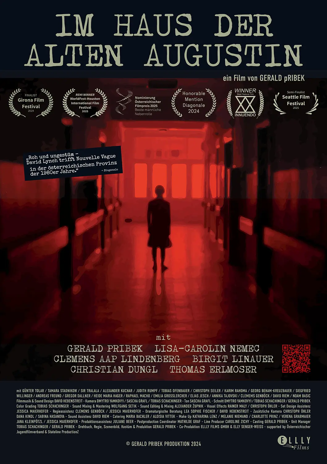 Es ist ein Werk eines offensichtlich leidenschaftlichen Filmliebhabers, das ein Feuerwerk filmgeschichtlicher Referenzen entzündet. Fassbinder, und die Novel Vague aber auch Lynch und Hitchcock kamen uns in den Sinn. Mit großer Spiel- und Erzählfreude, mit Lust auch an Can & Trash arrangiert »Im Haus der alten Augustin« Genre-Versatzstücke und verschränkt Thrillerplot und Liebesgeschichte. Die betört mit einer unwiderstehlichen selbstbewussten weiblichen Hauptfigur und rasanten Schlagabtäuschen zwischen den Liebenden, deren Tempo und Dynamik an Scovel comedies erinnern. Handwerklich mutet dieser ganz und gar unabhängig produzierter Film in Teilen roh und ungestüm an, er erzielt aber gerade so einen Look von filmischer Materialität, die die Zeit und den Schauplatz des Geschehens kongenial erfassen. Die österreichische Provinz der 1980er Jahre. Zusammen mit einem Kleinstteam hat Regisseur Gerald Pribek ein atmosphärisch dichtes und ungeheuer charmantes Werk geschaffen, das uns verzaubert hat und von dem eine ansteckende Liebe an das Kino ausgeht. Wir gratulieren sehr herzlich Gerald Pribek, mach weiter!